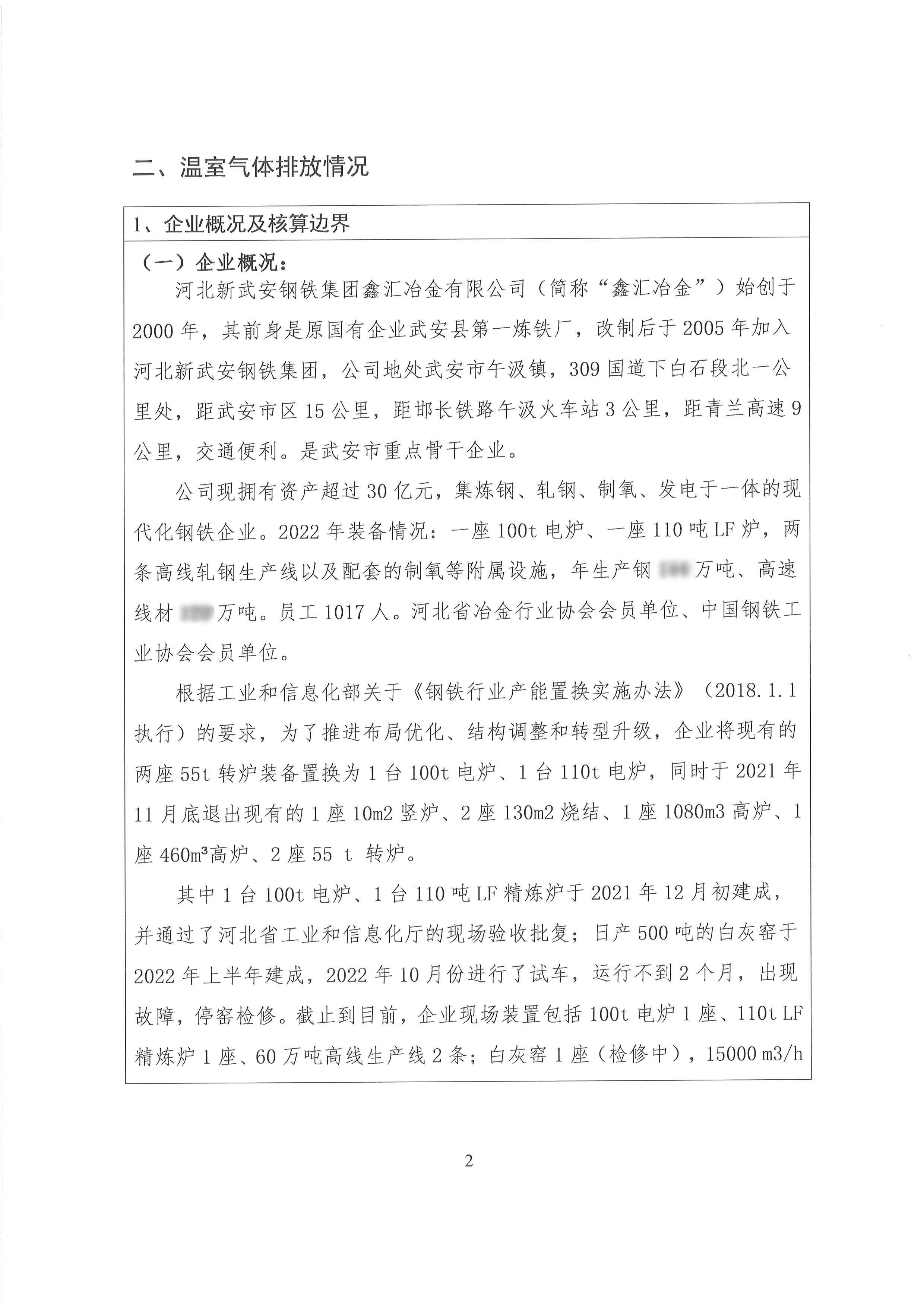 2022年河北新武安鋼鐵集團(tuán)鑫匯冶金有限公司碳排放報(bào)告